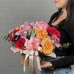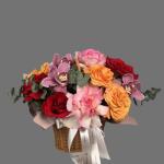 Тёплая палитра цветов в удобной корзине, излучающая радость и энергию. Подарок, который обязательно вызовет улыбку и зарядит позитивом.