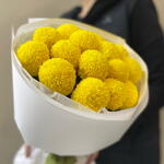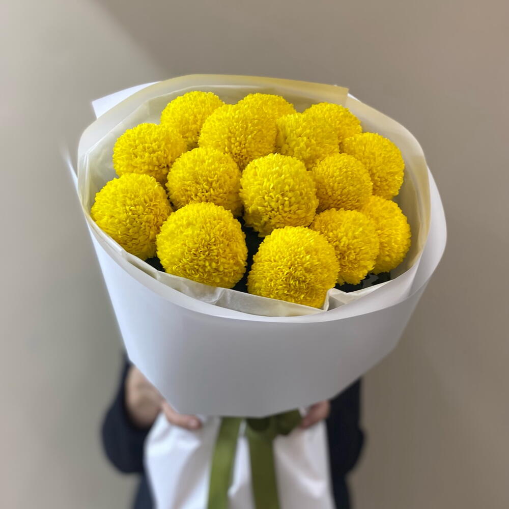 Нежный солнечный цвет создаёт ощущение уюта, тепла и спокойной радости. Букет выглядит минималистично, современно и очень аккуратно — ничего лишнего, только чистая форма и цвет.