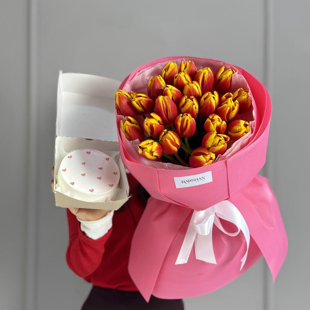 Тюльпан - 25 шт. бенто торт - 1 шт.