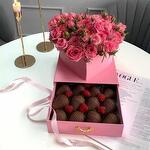 Клубника в шоколаде - 12 шт. Спрей роза - 7 шт.
