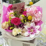 Chrysanthemum - 3 шт. dianthus - 4 шт. craspedia - 2 шт. solidago yellow - 3 шт. rose esperance - 2 шт. lily peony - 1 шт.