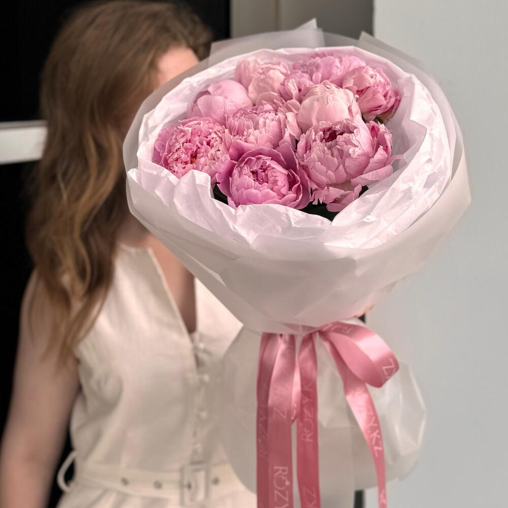 Стильный букет из 9 пионов