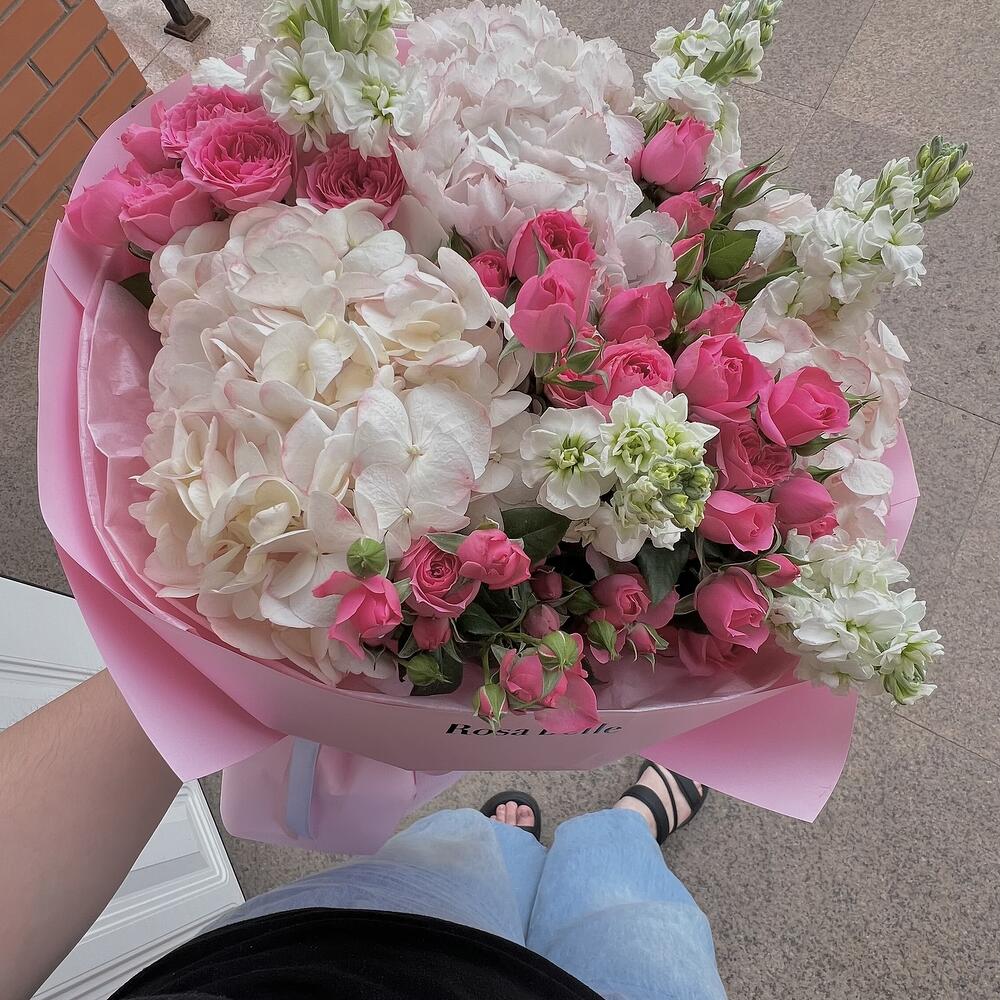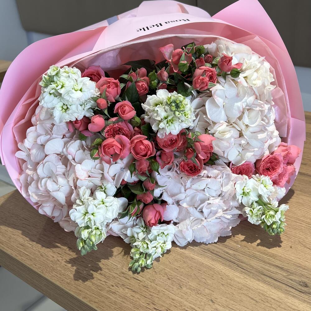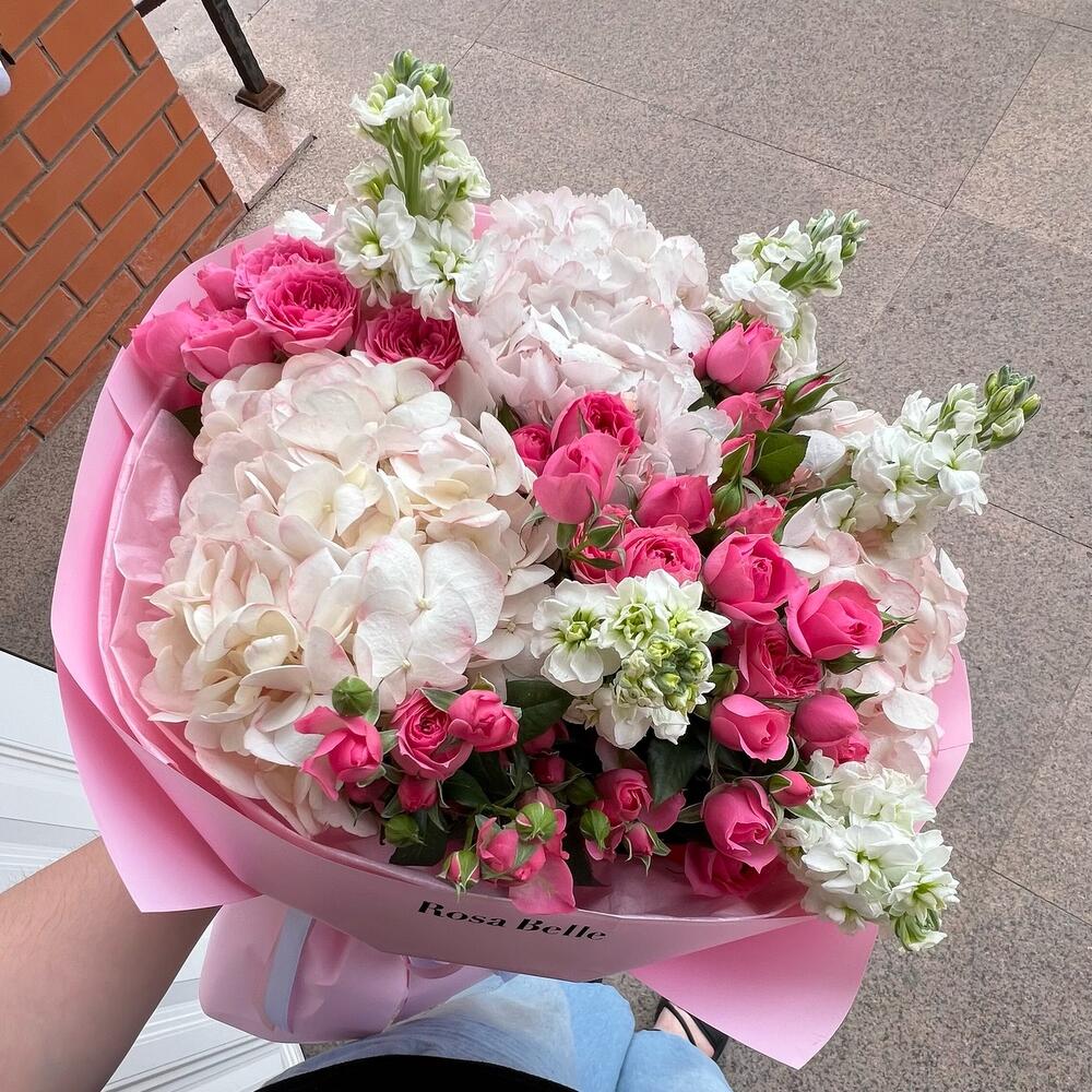 Гортензия - 3 шт. Маттиола - 5 шт. Кустовая роза - 5 шт.