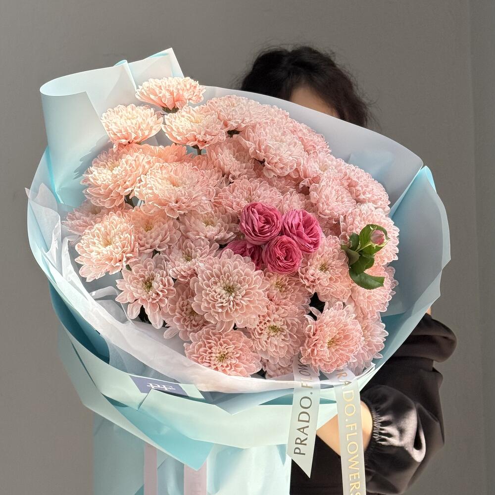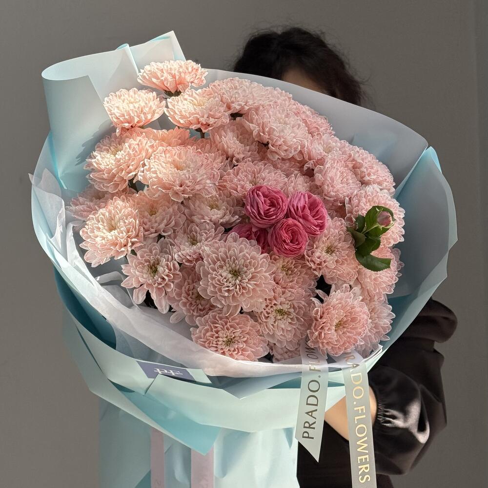 Хризантема кустовая - 6 шт. Спрей роза - 1 шт.