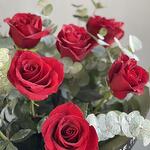 Роскошный букет из бордовых роз премиального качества с веточками эфкалипта. Будет отличным подарком к любому празднику или признанию в любви девушке, женщине, бабушке, маме. Наша бережная доставка быстро привезёт букет к любому мероприятию.