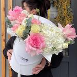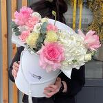 Гортензия - 1 шт. Роза - 5 шт. Эустома - 2 шт. Диантус - 3 шт.