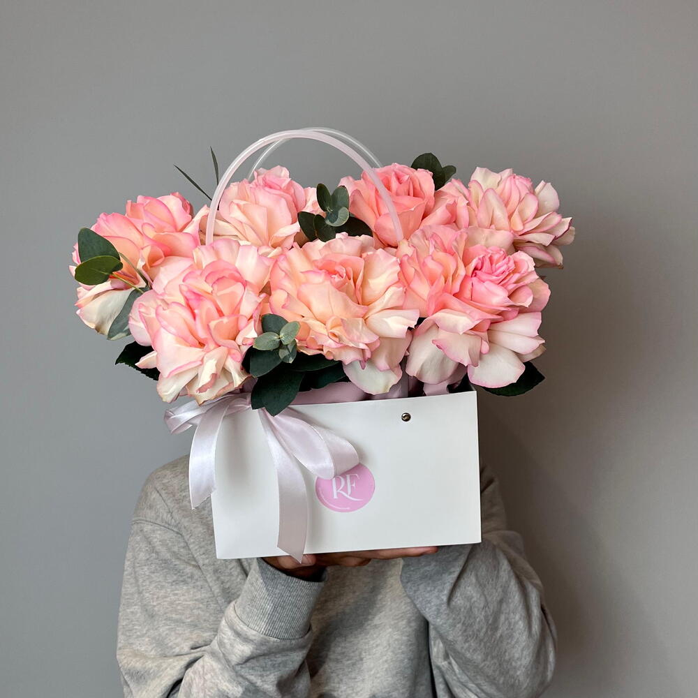 Оазис - 1 шт. Французская роза - 7 шт. Сумочка - 1 шт. Эвкалипт Микс - 1 шт.