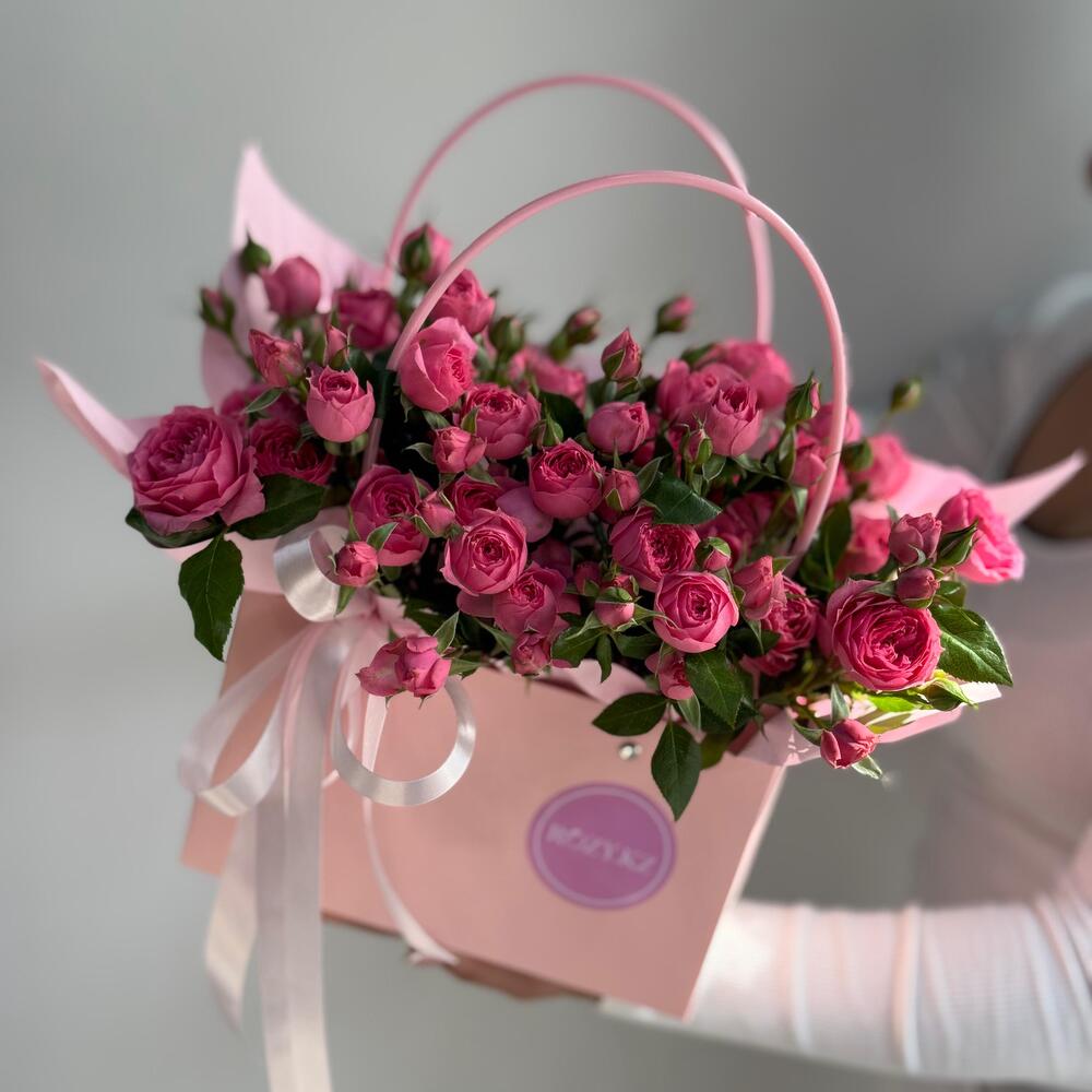 Упаковка дизайнерская - 1 шт. Оазис флористический - 1 шт. сумочка 1.5 - 1 шт. роза кустовая сафи - 7 шт.