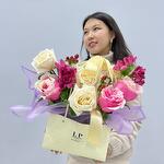 Альстромерия - 3 шт. Гиперикум - 3 шт. Роза - 7 шт.