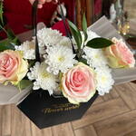 Зелень - 2 шт. Хризантема - 9 шт. розы - 3 шт.