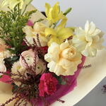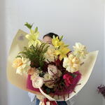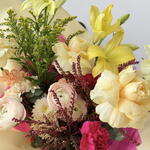 Солидаго - 1 шт. Хризантема кустовая - 5 шт. Пиерис - 2 шт. Эвкалипт Цинерея - 5 шт. диантусы - 6 шт. Ранункулус Клуни Ханои Розовый - 3 шт. розы buttercup - 5 шт. лилия азизатика - 2 шт.