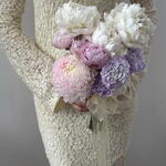 Нежный свадебный букет в пастельных тонах с пионами, хризантемами и диантусами идеально дополнит образ невесты Доставляется на вазе и в транспортировочной коробке. Лента на выбор: кружевная, хлопковая или атласная.