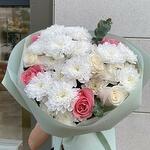 Эвкалипт - 1 шт. Роза - 8 шт. Хризантема - 4 шт.