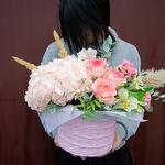 Альстромерия - 3 шт. Гортензия - 1 шт. Эвкалипт - 1 шт. Роза - 5 шт. Гвоздика - 3 шт.