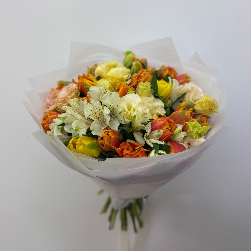 Альстромерия - 5 шт. Эустома - 4 шт. пионовидные тюльпаны - 15 шт.