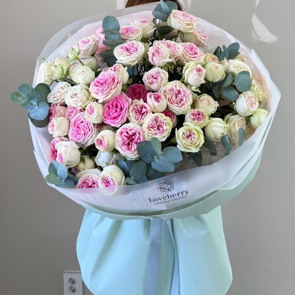 Эвкалипт Цинерея - 3 шт. джелато кустовая роза - 15 шт.