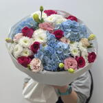 Гортензия - 3 шт. Роза - 8 шт. Хризантема - 5 шт. Эустома - 5 шт.