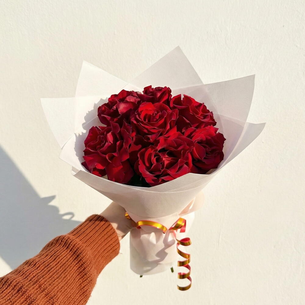 Этот изысканный монобукет из 7-ми роз высотой 50 см окутает вас своим роскошным ароматом и элегантностью. Розы этих цветов благородного насыщенного красного оттенка наверняка удивят своей изяществом и великолепием. Букет упакован в три сверкающие упаковки из мягкого фоамирана, что делает его еще более привлекательным и защищает от повреждений. Этот пышный букет - отличный способ порадовать любимого человека и проявить свои чувства!