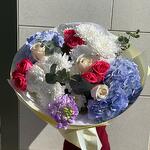 Гортензия - 2 шт. Маттиола - 1 шт. Эвкалипт - 1 шт. Роза - 4 шт. Кустовая роза - 3 шт. Хризантема - 2 шт.