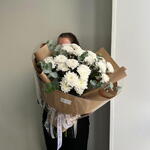 Лента - 1 шт. Хризантема кустовая - 5 шт. Эвкалипт - 1 шт. Оформление - 1 шт.