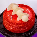Эвкалипт - 5 шт. Роза - 11 шт. Корзина плетеная - 1 шт. торт красный бархат - 1 шт.