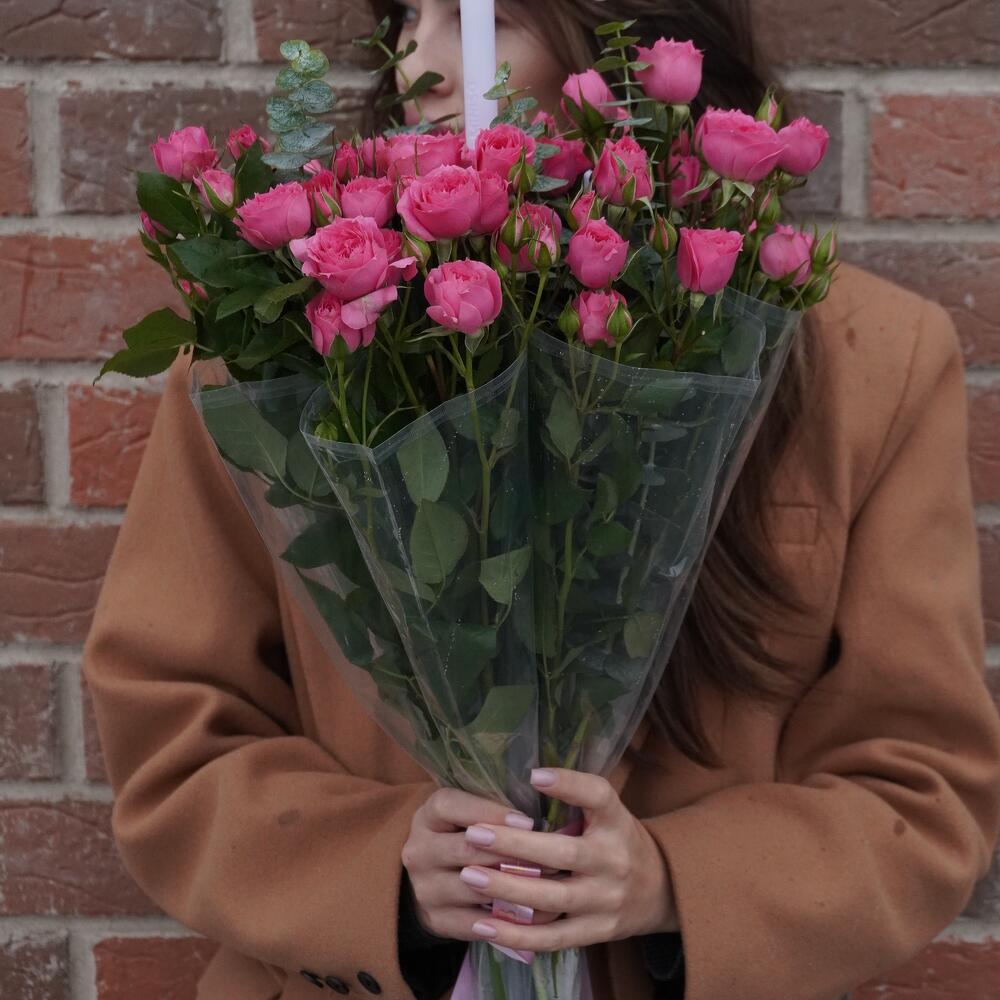 Эвкалипт - 5 шт. Кустовая роза - 9 шт.