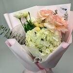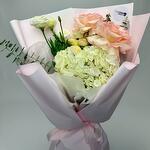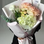 Гортензия - 1 шт. Лизиантус - 1 шт. Эвкалипт - 2 шт. Роза - 2 шт. Кустовая роза - 1 шт.