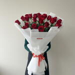Роскошный букет из алых роз — это классика, которая никогда не теряет своего шарма. Глубокий красный оттенок лепестков подчёркивает страсть, восхищение и искренние эмоции. Каждая роза отобрана вручную, чтобы букет выглядел безупречно и долго радовал своей свежестью. Белоснежная упаковка создаёт эффект контраста, делая цветы ещё более выразительными и элегантными. Яркая атласная лента завершает композицию, добавляя ей праздничного настроения. Такой букет станет идеальным подарком для особого случая и запомнится надолго.
