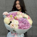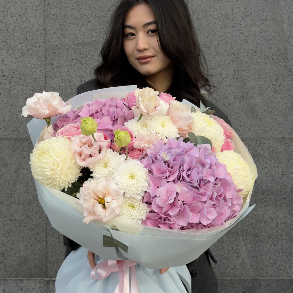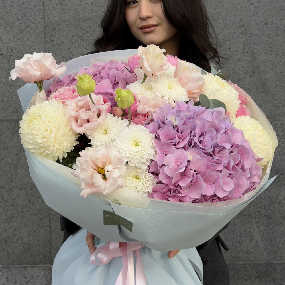 Шикарный букет , розовые гортензии с сочетании с ароматной эустомой и стойкими хризантемами, а также нежные кустовые розы, помогут Вам сказать вашим любимым о том что они прекрасны ❤️