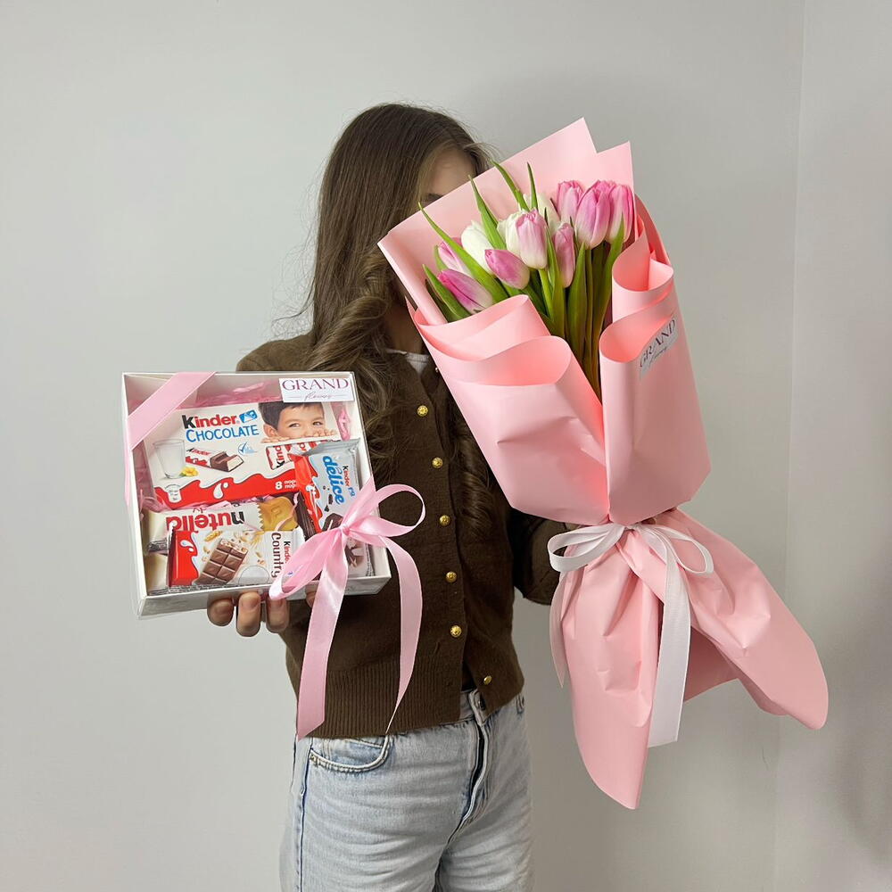 Киндер Делис - 1 шт. Киндер кантри - 1 шт. тюльпаны - 13 шт. киндер ломтики - 8 шт.
