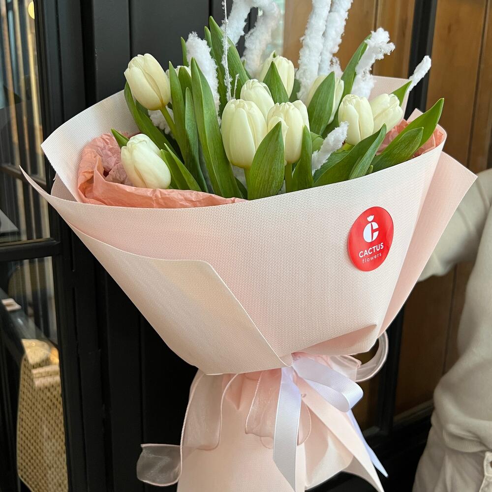 Тюльпан - 11 шт. Снежные ветки - 1 шт. Авторская упаковка - 1 шт.