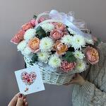 Хризантема кустовая - 4 шт. Эвкалипт - 1 шт. Роза кустовая пионовидная - 5 шт.