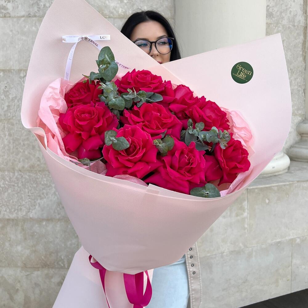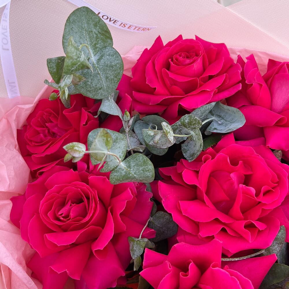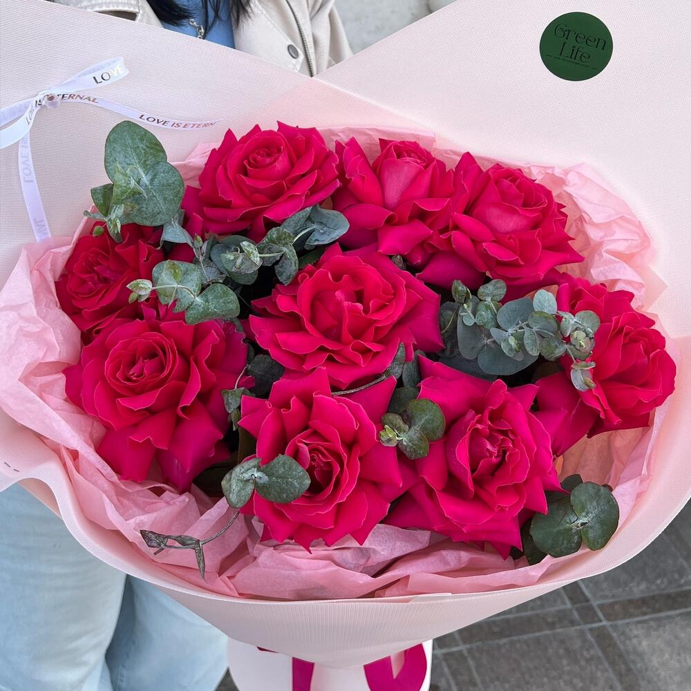 Яркий, как искра в глазах. Этот букет не про скромность — он про страсть, про “не могу не думать о тебе”, про желание быть рядом. Пульс учащается, когда он в руках. И всё вокруг — чуть насыщеннее.