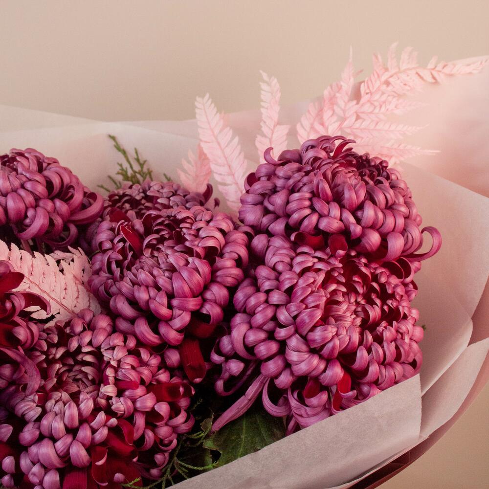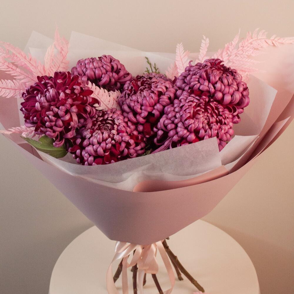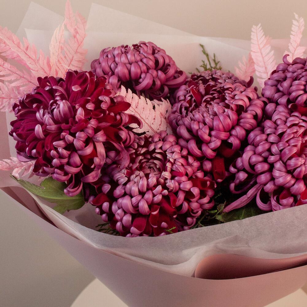 Хризантема одноголовая - 7 шт. Оформление - 1 шт. лист папоротника - 1 шт.