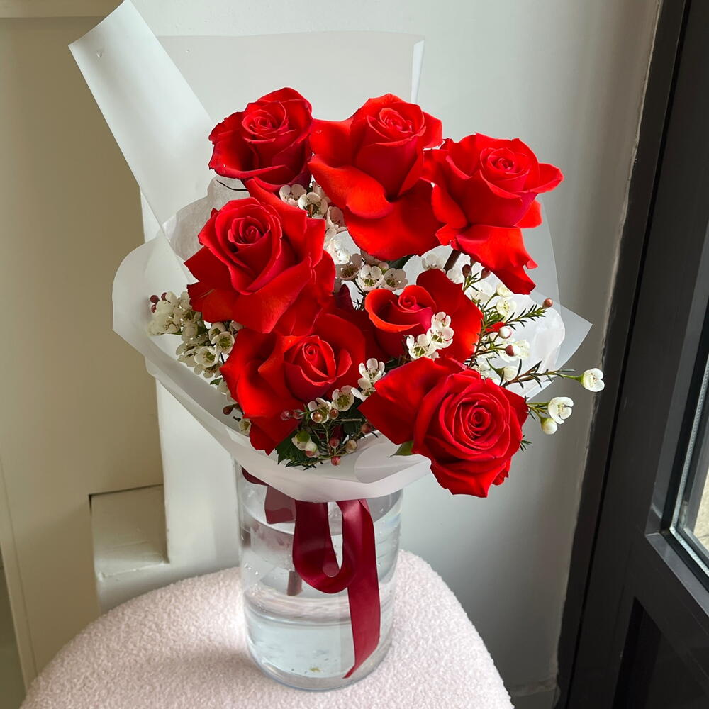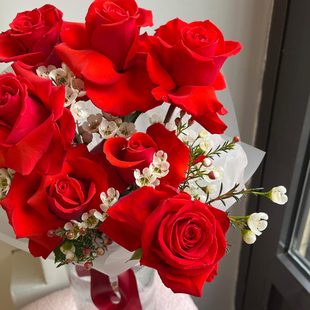 Ваксфлауэр - 4 шт. Роза - 7 шт. переноска для цветов - 1 шт.