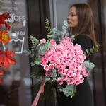 Вау букет из 51 розовой розы и эвкалипта