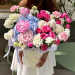 Гортензия - 1 шт. Лизиантус - 7 шт. Кустовая роза - 5 шт. Пион Розовый - 3 шт.