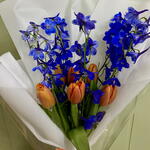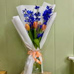 Дельфиниум Синий - 5 шт. тюльпаны оранжевые - 6 шт.