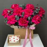 Эвкалипт - 1 шт. розы - 9 шт. сумка коробочная - 1 шт. бенто торт * молочная девочка * 250 г - 1 шт.