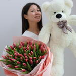 Тюльпан - 51 шт. Мишка плюшевый - 1 шт.