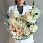 Гермини - 5 шт. Гортензия - 1 шт. Эвкалипт - 1 шт. Диантус - 2 шт. Роза пинк мондиаль - 6 шт. рускус стабилизированный - 1 шт. Антирринум - 2 шт.