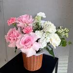 Маттиола - 2 шт. Хризантема кустовая - 1 шт. Диантус - 4 шт. розы - 5 шт.