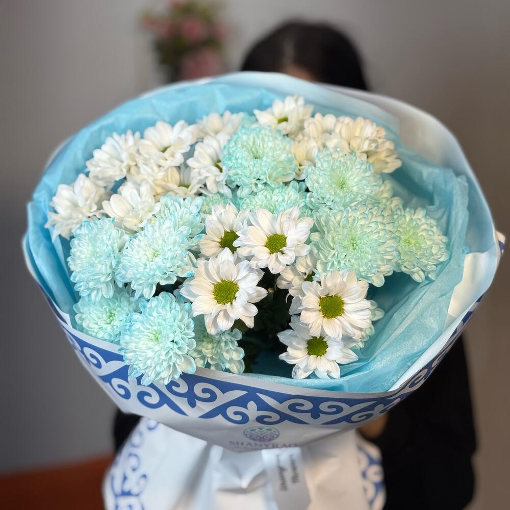 хризантема кустовая голубая и белоснежная - 11 шт.