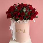 Эффектная композиция из 51 красной розы в пудрово-розовой шляпной коробке с лентами ROYAL — настоящий символ страсти и роскоши. Идеальный подарок, чтобы признаться в любви, поздравить с юбилеем или по-настоящему удивить. Композиция дополнена эвкалиптом, который придаёт свежести и стиля.