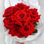 Роза - 7 шт. Лента атласная - 2 шт. бумага дизайнерская - 4 шт.