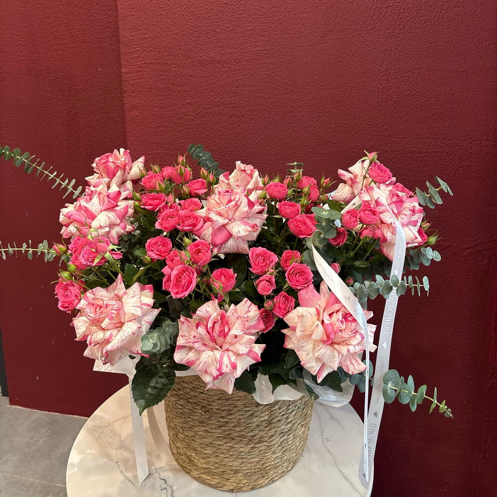 Роза кустовая - 10 шт. Эвкалипт - 2 шт. Роза - 9 шт.