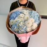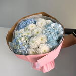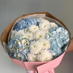 Воздушный букет из гортензии и хризантем