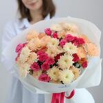 Этот яркий и пышный букет, сочетающий сортовые кустовые розы с яркими хризантемами, привнесёт в ваш день настоящую вспышку красок и эмоций. Насыщенные оттенки роз и динамичное сочетание с хризантемами создают эффектный и стильный акцент, который идеально подойдёт для любых торжеств. Каждая деталь букета продумана до мелочей, чтобы подарить вам не только красоту, но и незабываемые ощущения. Мы предлагаем индивидуальный подход и удобную доставку