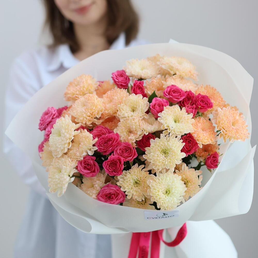 Хризантема кустовая - 5 шт. Кустовая роза - 4 шт.