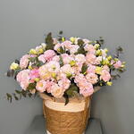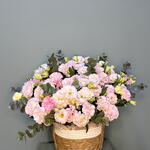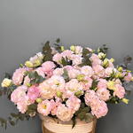Лизиантус - 17 шт. Эвкалипт - 7 шт. Кашпо - 1 шт.